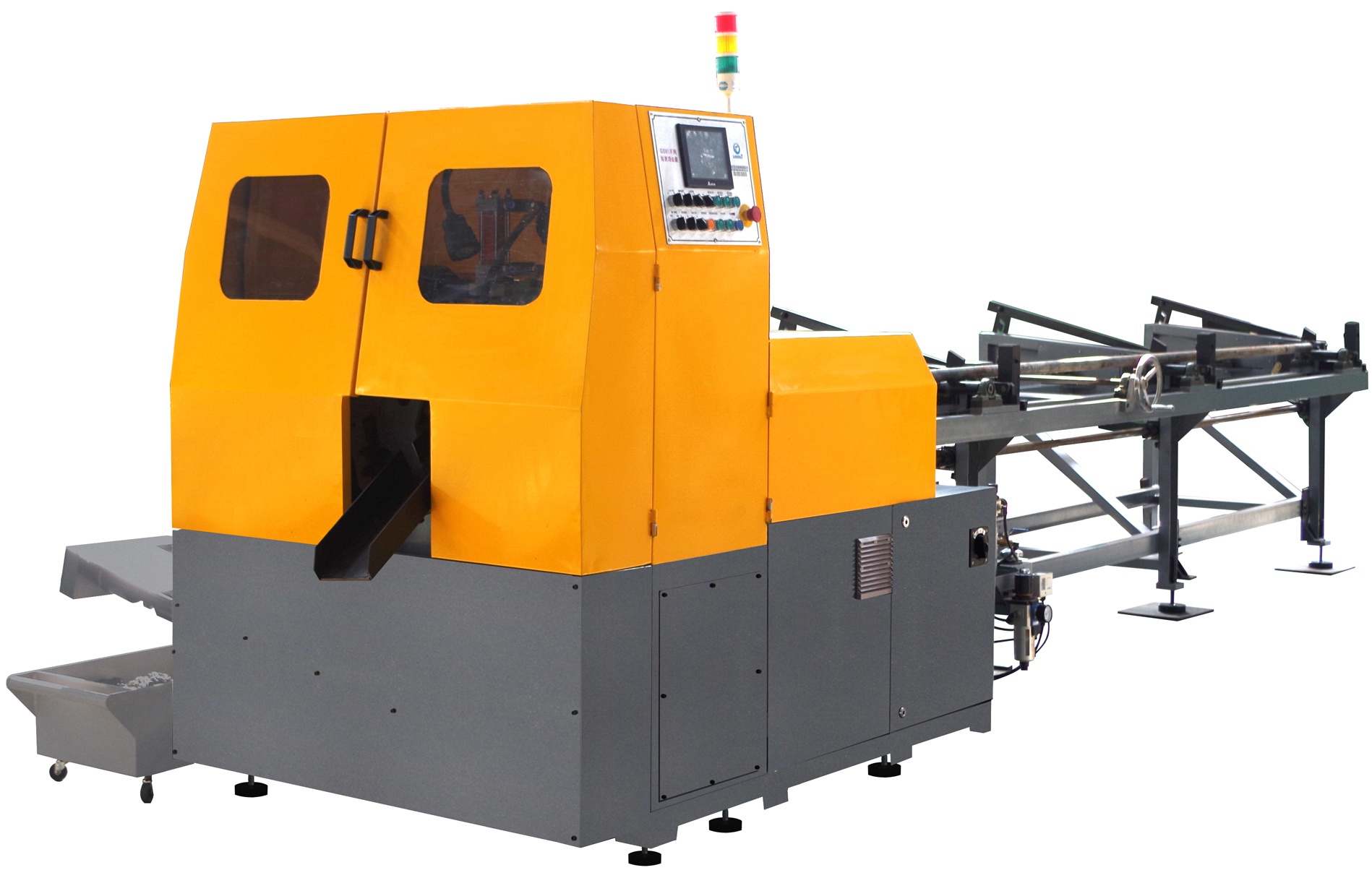 鋸片切削進(jìn)給系統(tǒng)使用伺服馬達(dá),配合滾珠螺桿傳動,確保鋸片移動等速性,增加切削時(shí)之準(zhǔn)確性與穩(wěn)定度。